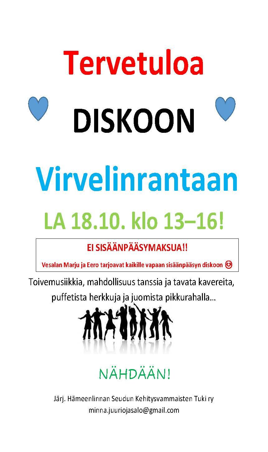 Vesalan Marju ja Eero tarjoavat kaikille vapaan sisäänpääsyn diskoon, tervetuloa!